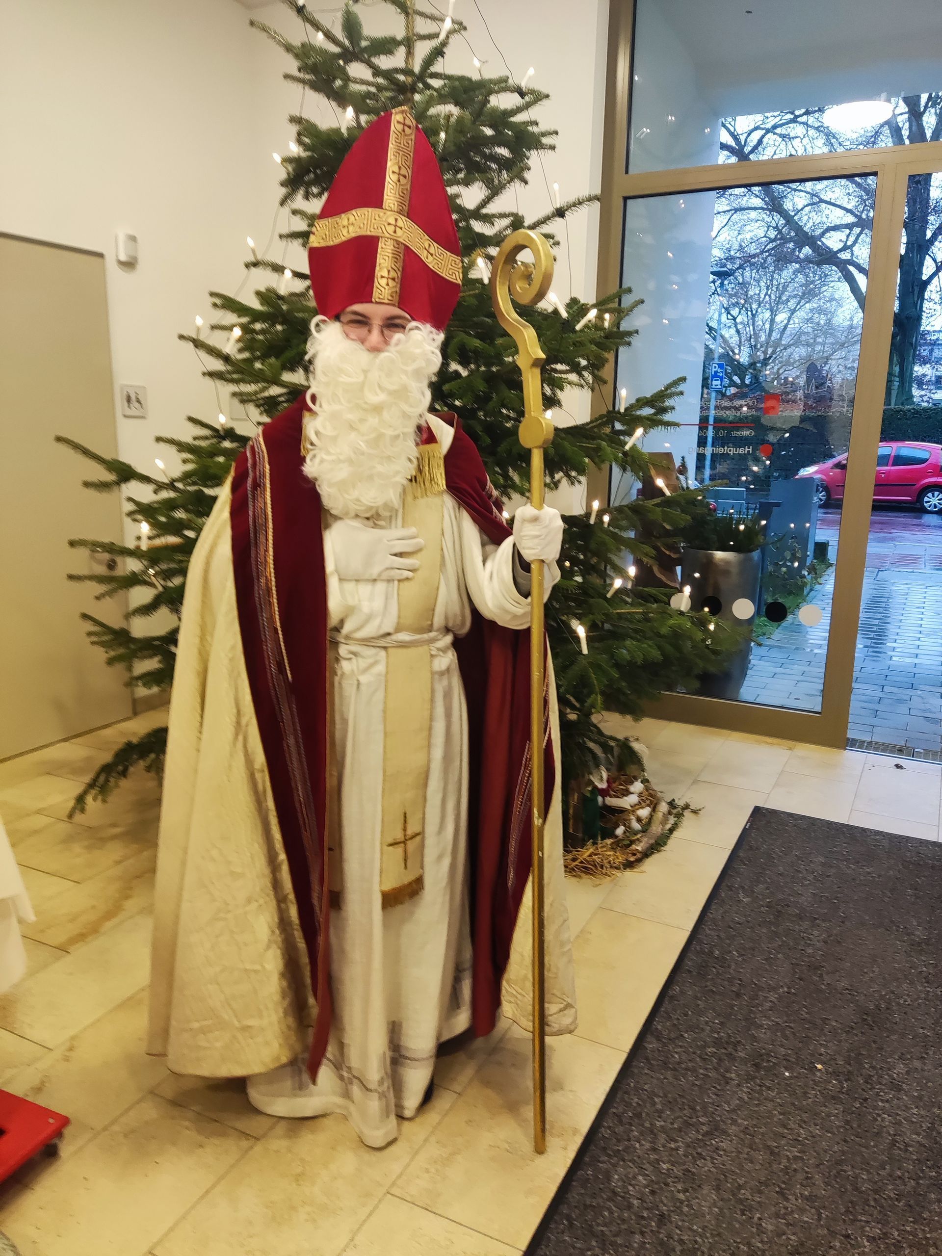 Einstimmend mit Glockenklingeln der kleinen Engelchen und bekannten Flöten-Klängen ging der Bischof Nikolaus auf alle drei Wohnbereiche und sprach mit den Anwesenden.