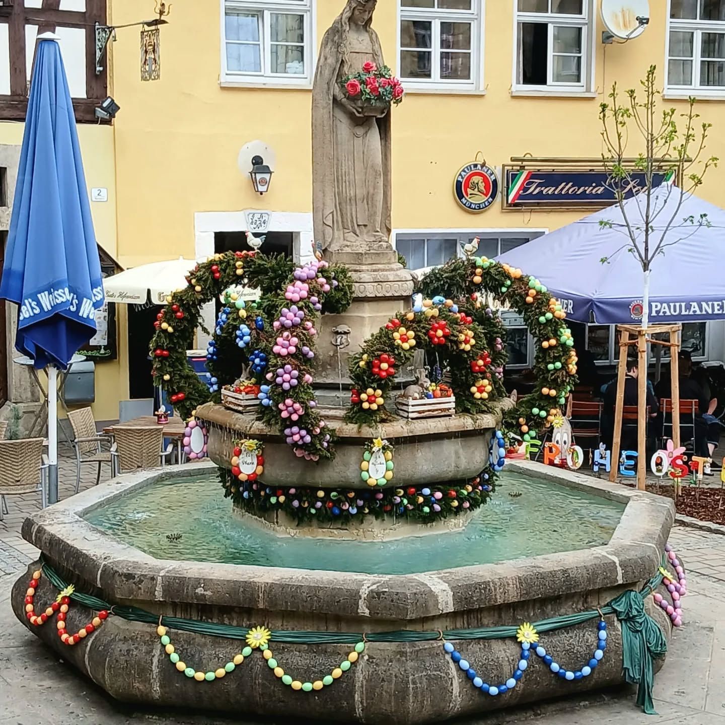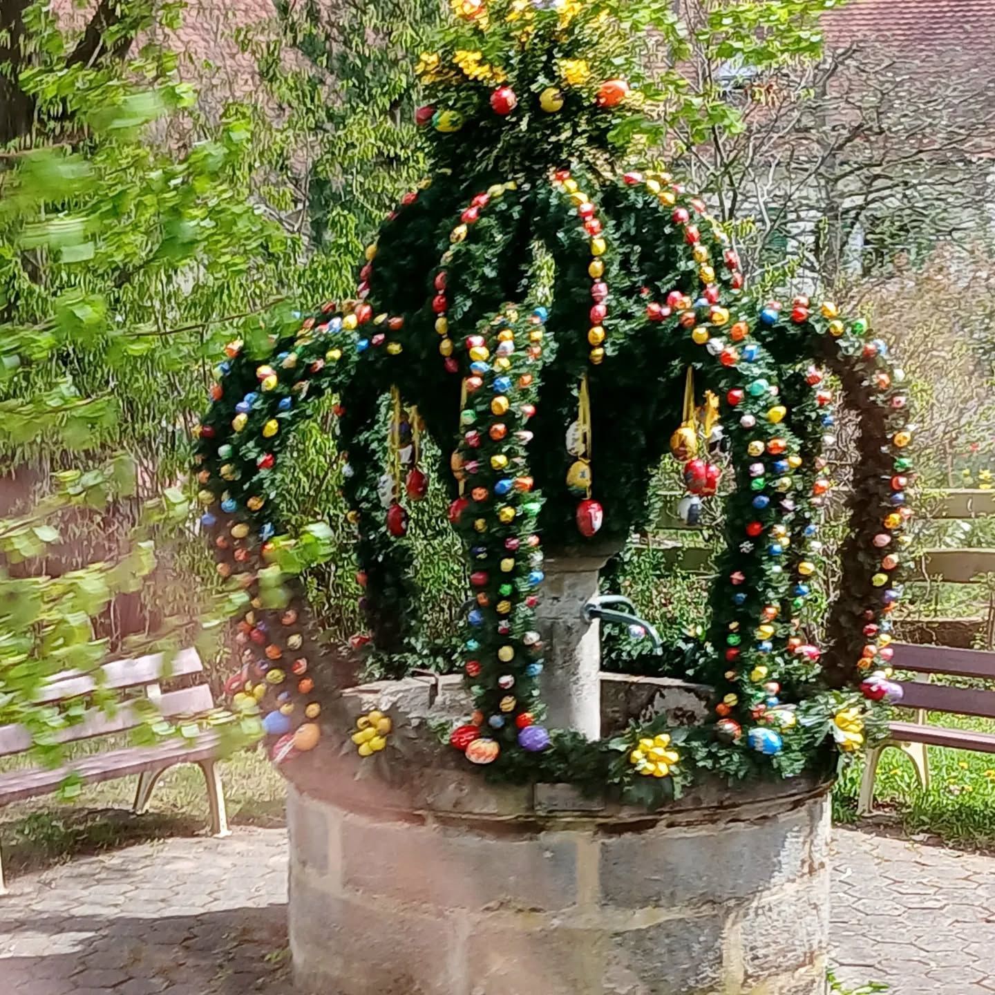 Vorbei ging es an liebevoll dekorierten Osterbrunnen, viele davon mit kunstvoll handbemalten Eiern geschmückt – ein beeindruckendes Zeugnis fränkischer Tradition und Kreativität. Unsere Route führte uns schließlich nach Pottenstein, wo wir bei Kaffee und Kuchen in einer gemütlichen Gastwirtschaft einkehren konnten. Hier wurde angeregt geplaudert, herzlich gelacht und die fröhliche Stimmung genossen.