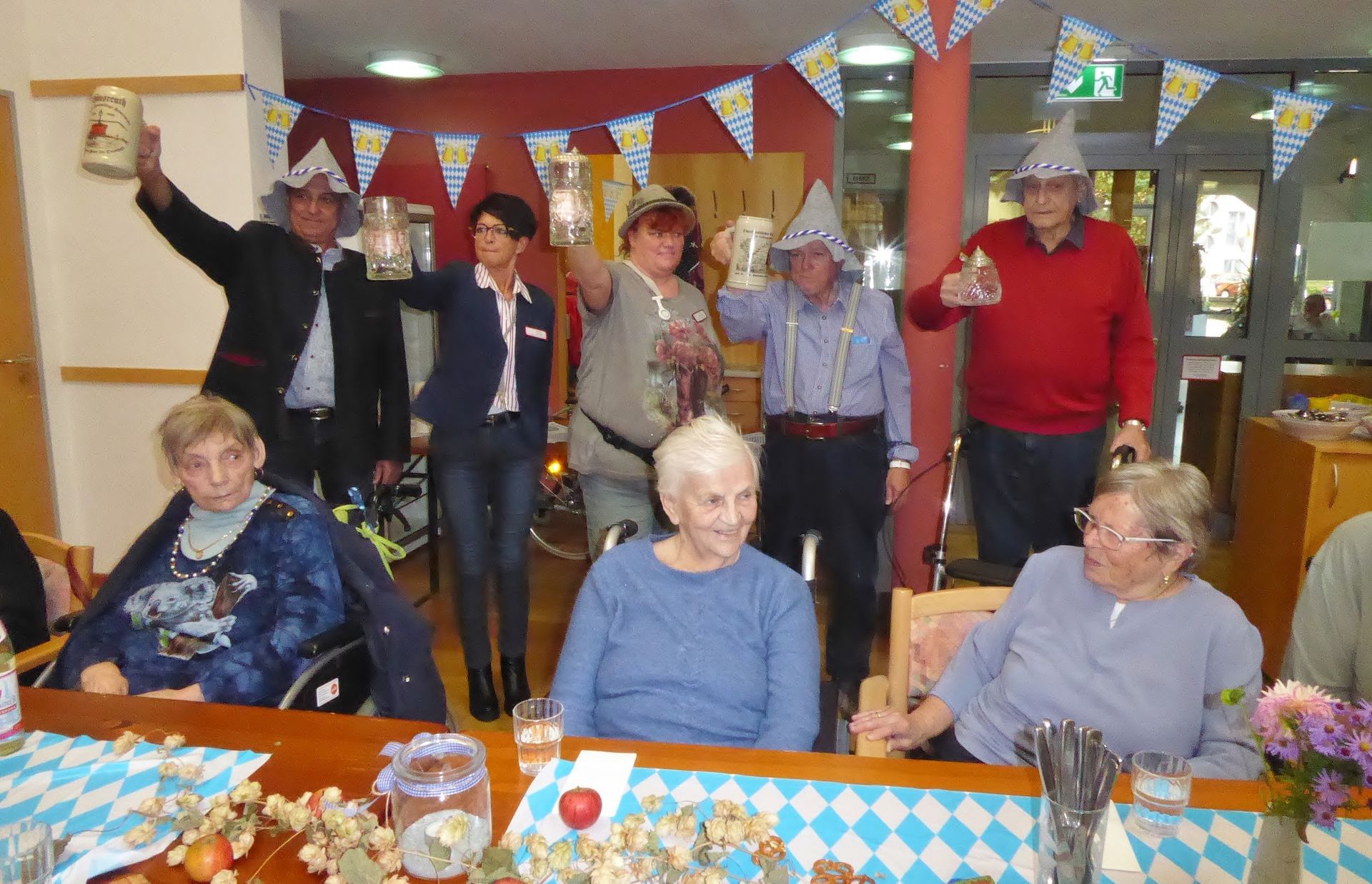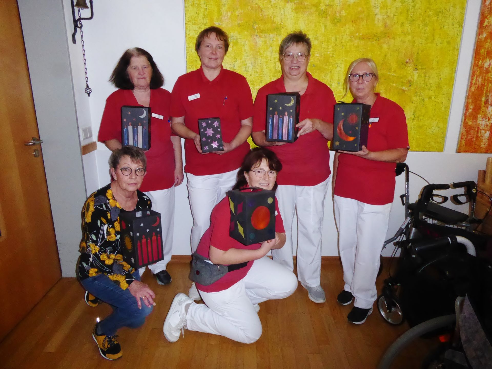 Die Einrichtungsleiterin dankte den Damen des Sozialen Dienstes, die nicht nur den Saal dekorativ geschmückt, sondern auch ein unterhaltsames Programm vorbereitet hatten und obendrein auch noch die Gäste bewirteten. „Kommt, wir wollen Laterne laufen“ sangen die Mitarbeiterinnen, als sie mit ihren selbstgebastelten Leuchten durch den Raum zogen. Bei einem Bewegungsgedicht, das von einem Laternenumzug mit Kindern erzählte, sollten die Senioren beim Wort „Laterne“, das im Text sehr oft vorkam, die Hände heben. Nachdem die Frauen und Männer sich bei Kaffee und köstlichem Martini-Gebäck gestärkt hatten, berichtete Karina Schmitt vom Leben und Wirken des heiligen Martin von Tours, der mit einem frierenden Bettler seinen Mantel teilte und später zum Bischof ernannt wurde. Die Senioren lauschten dem Gedicht „Ein bisschen so wie Martin“ und der Geschichte von einer Oma, deren Enkelin Lisa eine Martinslaterne gebastelt hat, auf die sie sehr stolz ist. Für ihre mit Liedern umrahmten Darbietungen erhielten die Damen des Sozialen Dienstes herzlichen Beifall. Heimbeiratsvorsitzender Ludwig Groß bedankte sich am Ende bei allen, die mit diesem schönen Nachmittag den Heimbewohnern und Gästen viel Freude bereitet haben.